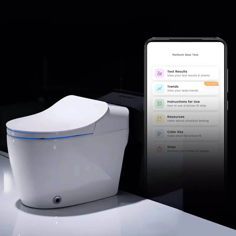 Users can detect 14 indicators when they use this smart toilet bidet, including vitamins, urine specific gravity, microalbumin, pH, self-cell, urine sugar, ketone bodies, urine protein, nitrite, bilirubin, urobilinogen, urine calcium, occult blood, and creatinine.