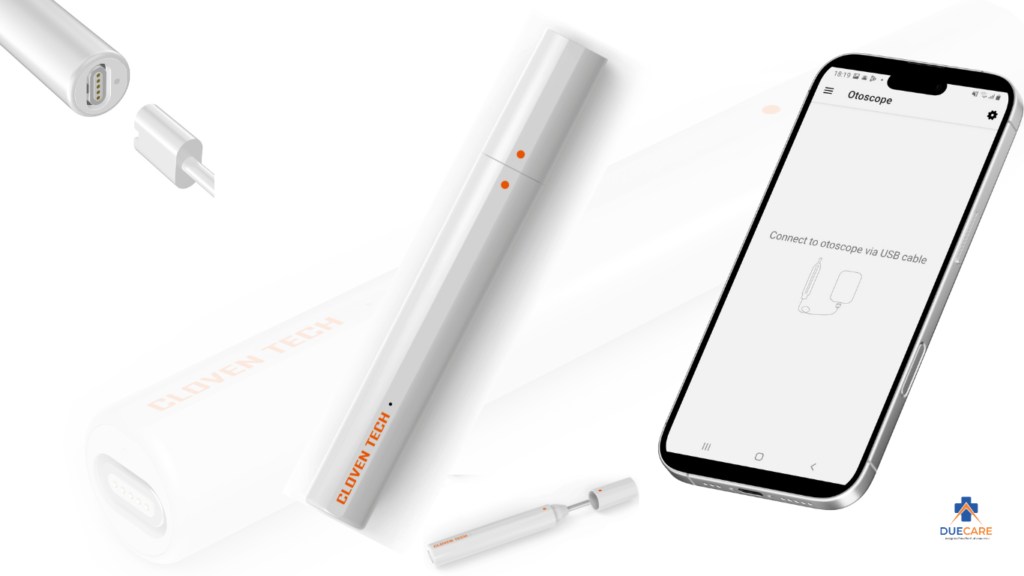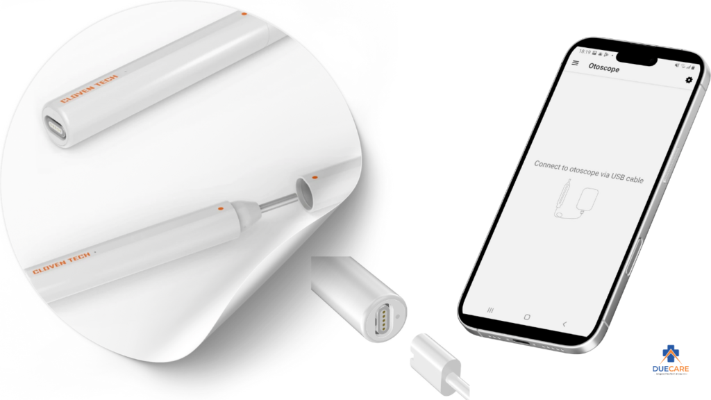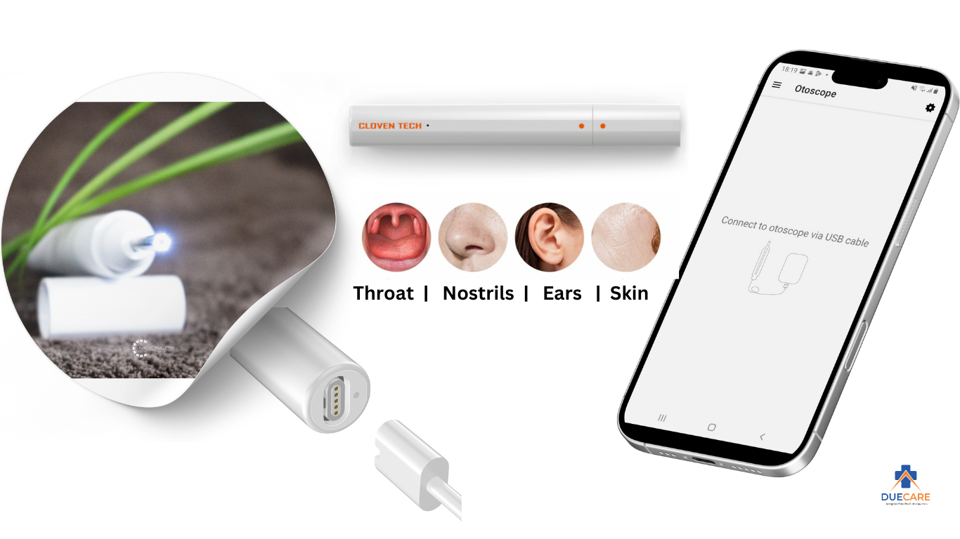 DueOto or DueCare Digital Otoscope – is a lightweight smart HD Digital Otoscope for remote imaging in the DueCare IoMT range. The device is ideal for ear, nosrtils, throat, dental, skin and general examination. It is equipped with HD camera, cold and shadowless white LED lights, and smart visual applications.